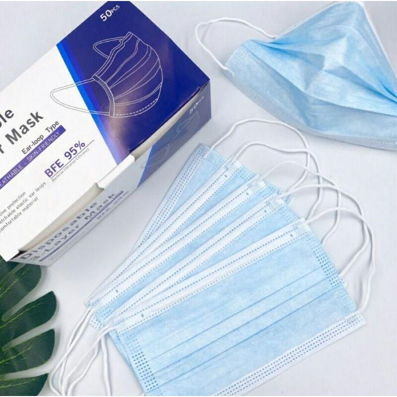 Masker 3 ply 50 pcs dewasa Earloop Disposable Mask no box